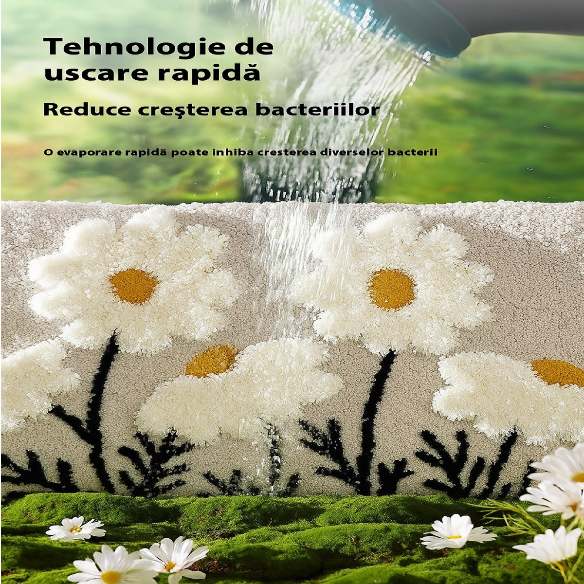 Transforma-ti baia intr-un refugiu de confort cu acest covoras de baie moale si absorbant, decorat cu un design vibrant de margarete.